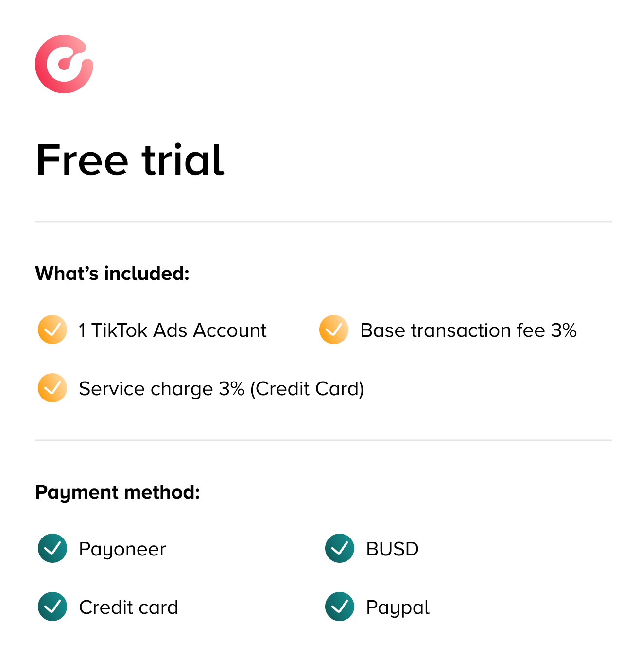 14 day trial to use our agency ad account. A new ad account will be created automatically on our platform and you will have 14 days for trial to enjoy our service