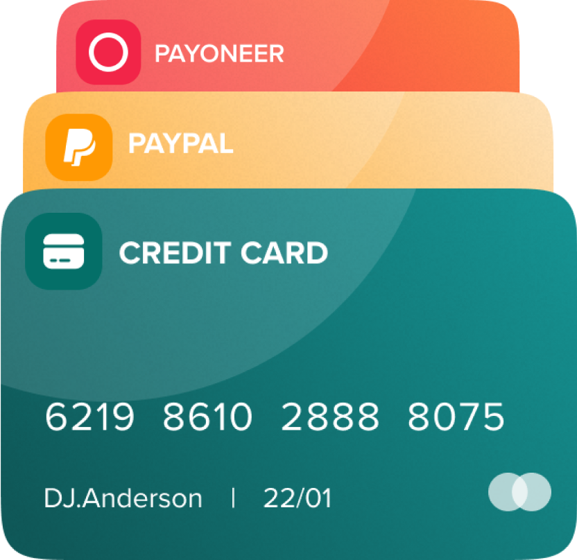 Top up easily with our multiple payment methods: Credit card, Paypal, BUSD, USDT and Payoneer